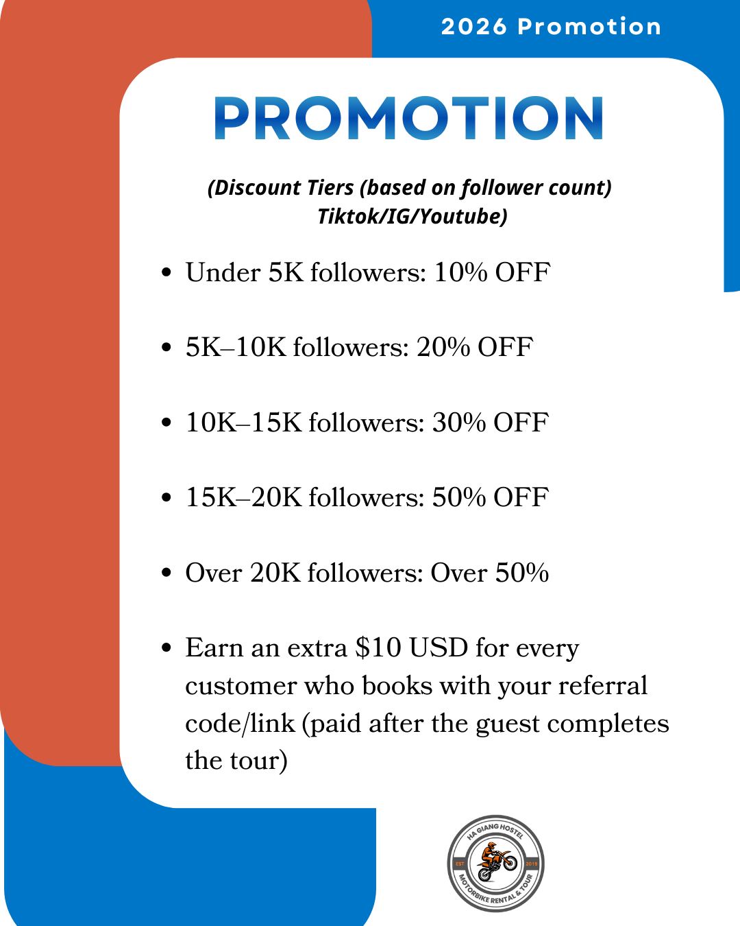 The tour packages: Ha Giang loop tour self – riding and Ha Giang loop tour with easy rider (optional) But you have to have international driving bike license if you riding bike your self.